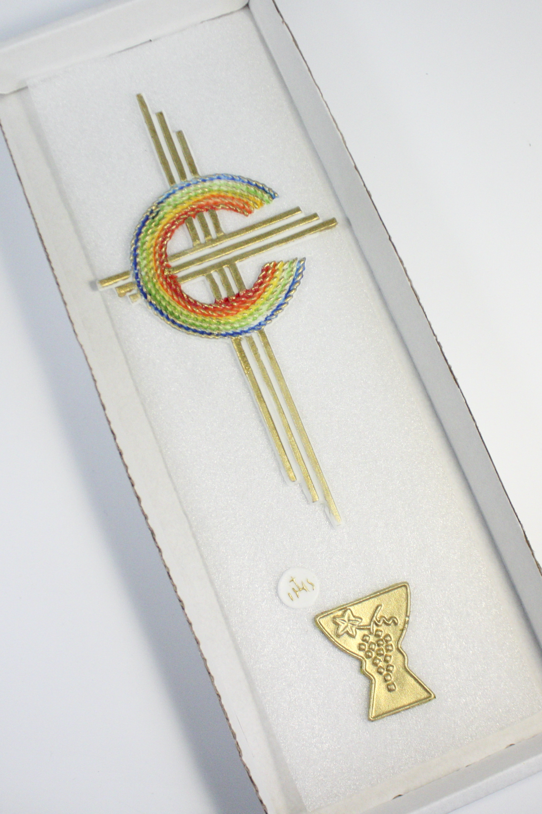 - 1 goldenes Kreuz mit Regenbogenkreis